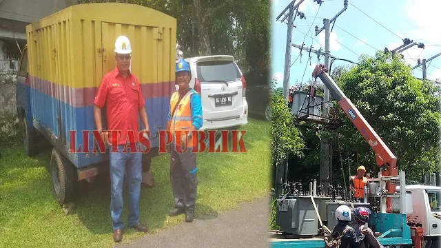 | Manager ULP Siantar Kota, Holmes Hutapea (kiri baju merah). Perbaikan Gardu di jalan MH. Sitorus/dok.lintaspublik.com |